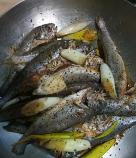 3. 腌制小鱼:在小鱼中加入适量的盐、糖、胡椒粉、料酒,腌制10分钟。